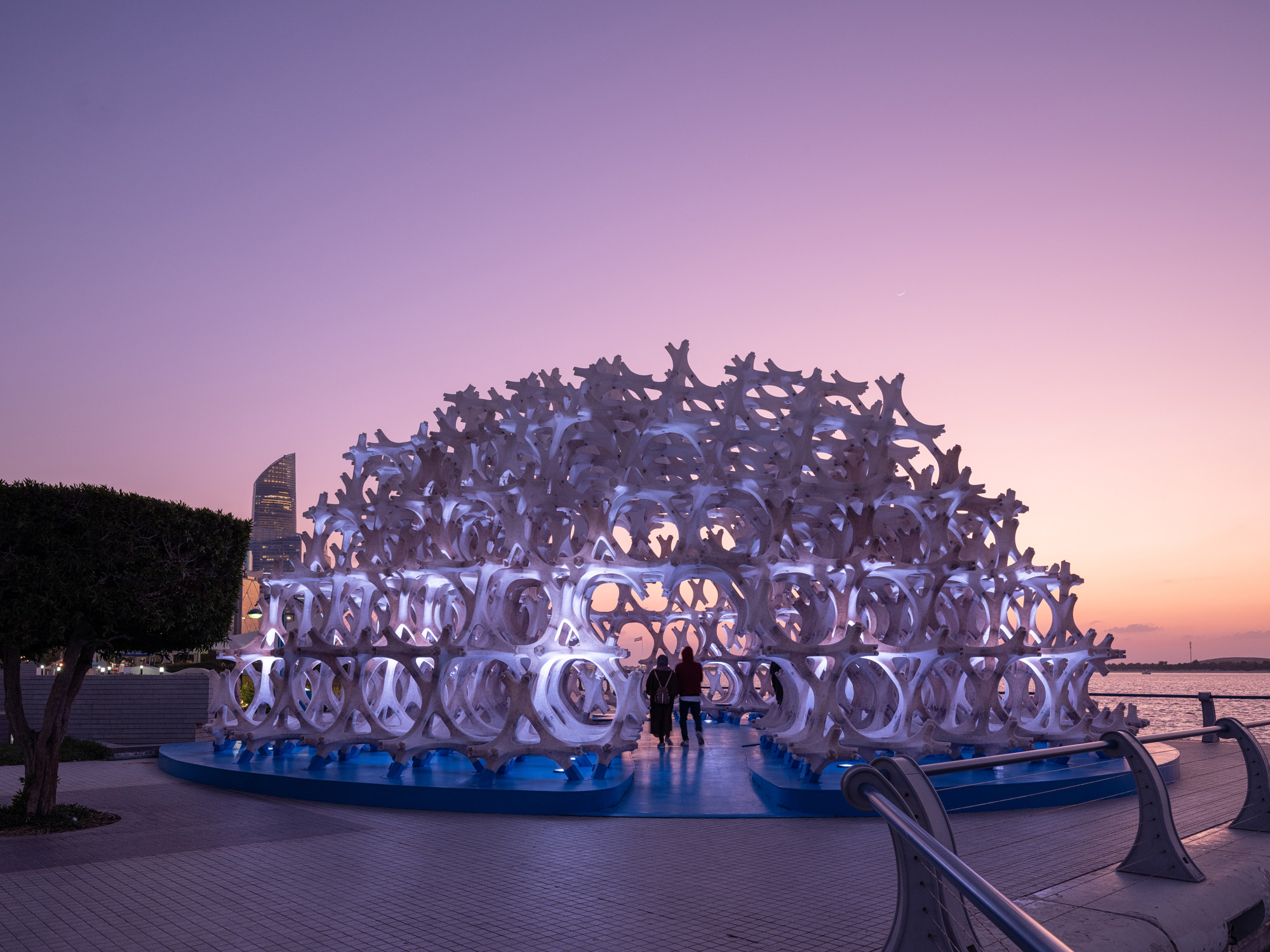 The reliance on plastic for large-scale infrastructure projects produces a high level of carbon emissions. Palm fiber is found in abundance across our natural environment and has been used in traditional architecture in the region for centuries. Like many countries, the UAE relies on desalination to produce drinking water. Desalination at a large scale here produces brine, which is often pumped back into the Gulf, damaging the marine ecosystem. This project invites us to think again about the context we inhabit, to respond to local manifestations of global problems. waiwai proposes a solution that embraces the materials and processes that surround us to find what could be a future vernacular for architecture.
